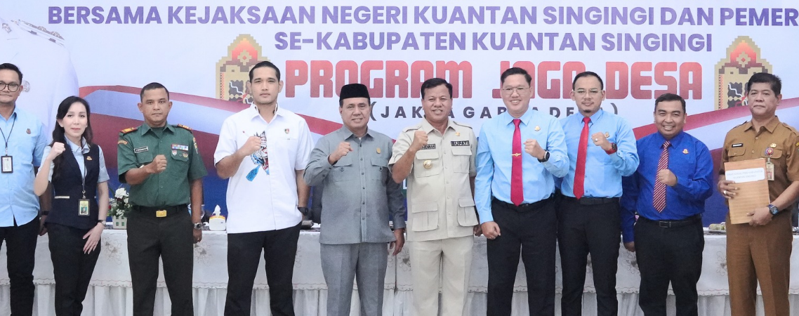 Teluk Kuantan - Bupati Kuantan Singingi (Kuansing) Dr. H. Suhardiman Amby, MM menghadiri kegiatan penandatanganan Kesepahaman Bersama (MoU) antara Kejaksaan Negeri dan Dinas Sosial Pemberdayaan Masyarakat dan Desa (Dinsos PMD) Kuansing dalam program Jaksa Jaga Desa, di Pendopo Rumah Dinas Bupati, Selasa (24/06) Pagi. Bupati Kuansing,...
