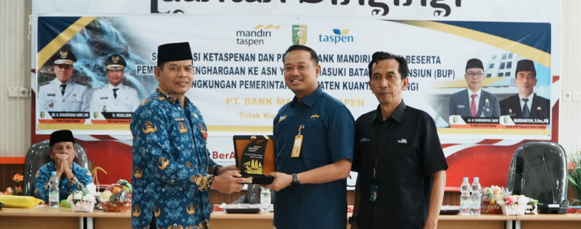 Teluk Kuantan – PT. Bank Mandiri Taspen Teluk Kuantan bekerja sama dengan Badan Kepegawaian, Pendidikan dan Pelatihan (BKPP) Kabupaten Kuantan Singingi melaksanakan kegiatan sosialisasi bagi Aparatur Sipil Negara (ASN) yang akan memasuki Batas Usia Pensiun (BUP). Kegiatan ini digelar pada Selasa (20/05/2025) di ruang rapat multimedia...