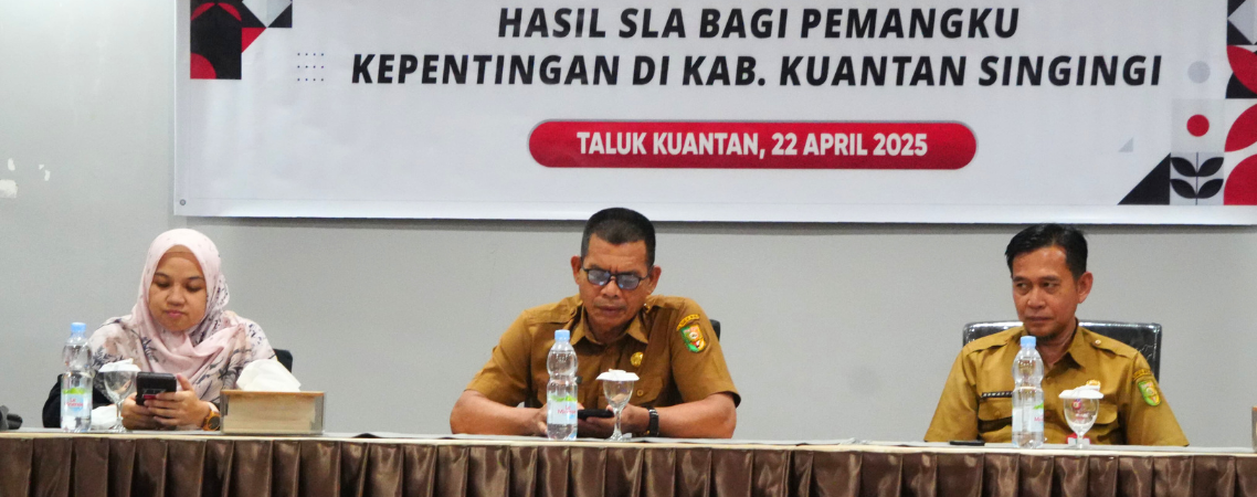 Teluk Kuantan - Bupati Kuantan Singingi (Kuansing) diwakili oleh Asisten III Administrasi Umum Sekretariat Daerah (Setda) Kuansing, Drs. Rustam menghadiri acara Diseminasi hasil SLA (Suistanable Livehood Approach) bagi Pemangku Kepentingan Terkait, Selasa (22/04/2025), di Ruang Rapat Hotel Anggela Teluk Kuantan.