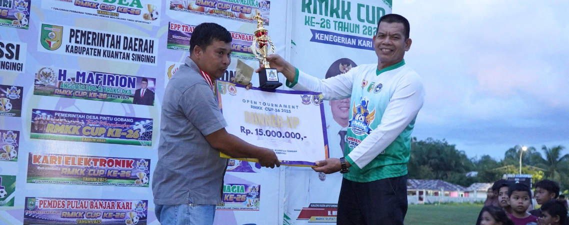 Teluk Kuantan - Bupati Kuansing Dr. H. Suhardiman Amby, MM diwakili Asisten III Setda Kuansing Drs. Rustam menyaksikan Final sepak bola pada Turnamen RMKK CUP ke 26 tahun 2025 sekaligus penutupan bertempat di Lapangan Sepak Bola Kenegerian Kari Kecamatan Kuantan Tengah, Rabu (23/04/2025) Turnamen Sepak Bola RMKK Cup diikuti sebanyak...