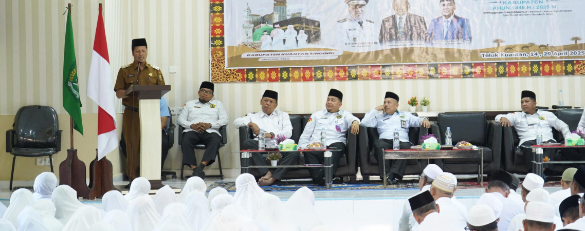 Teluk Kuantan - Wakil Bupati (Wabup) Kuantan Singingi (Kuansing) H. Muklisin membuka kegiatan Bimbingan Manasik Haji bagi ratusan jemaah calon haji tahun 1446 Hijriah tingkat Kab. Kuansing, Senin (14/04/2025) pagi, di Aula Kantor Kementerian Agama (Kemenag) Kuansing, Teluk Kuantan. Wakil Bupati Kuansing, H. Muklisin pada sambutannya...
