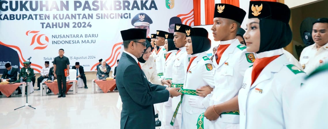 Teluk Kuantan - Sebanyak 34 anggota Pasukan Pengibar Bendera Pusaka (Paskibraka) Kabupaten Kuantan Singingi (Kuansing) dikukuhkan oleh Bupati Kuansing Dr. H. Suhardiman Amby, MM diwakili oleh Penjabat Sekretaris Daerah (Pj Sekda) dr. H. Fahdiansyah, SpOG, di Pendopo Rumah Dinas Bupati, Kamis (15/7) malam. Pada...