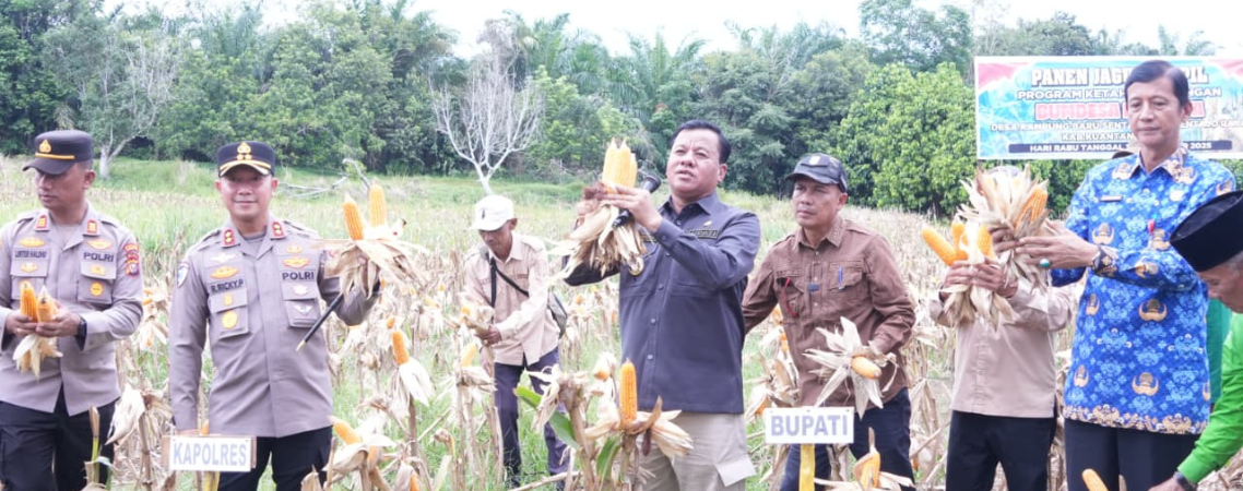 Sentajo Raya – Bupati Kuantan Singingi, Dr. H. Suhardiman Amby, MM menegaskan komitmennya untuk memperkuat ketahanan pangan di Kabupaten Kuansing melalui program budidaya jagung pipil. Hal ini ia sampaikan saat menghadiri panen raya jagung pipil yang dikelola BUMDes Permata, Desa Kampung Baru, Kecamatan Sentajo Raya, Rabu (17/9/2025)...