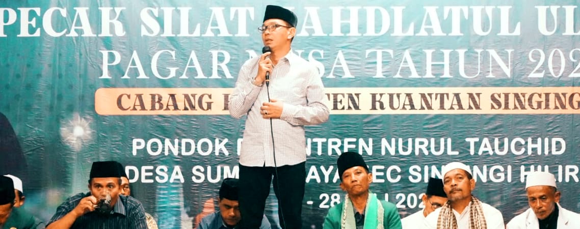 Singingi Hilir - Bupati Kuantan Singingi (Kuansing) diwakili oleh Penjabat Sekretaris Daerah (Pj Sekda) dr. Fahdiansyah, SpOG menghadiri Pengukuhan Anggota Tetap Pencak Silat Nahdlatul Ulama (NU) Pagar Nusa Tahun 2024, Sabtu (27/7) di Ponpes Nurul Tauchid Desa Sumber Jaya, Kecamatan Singingi Hilir. Pada sambutannya, Pj Sekda dr....