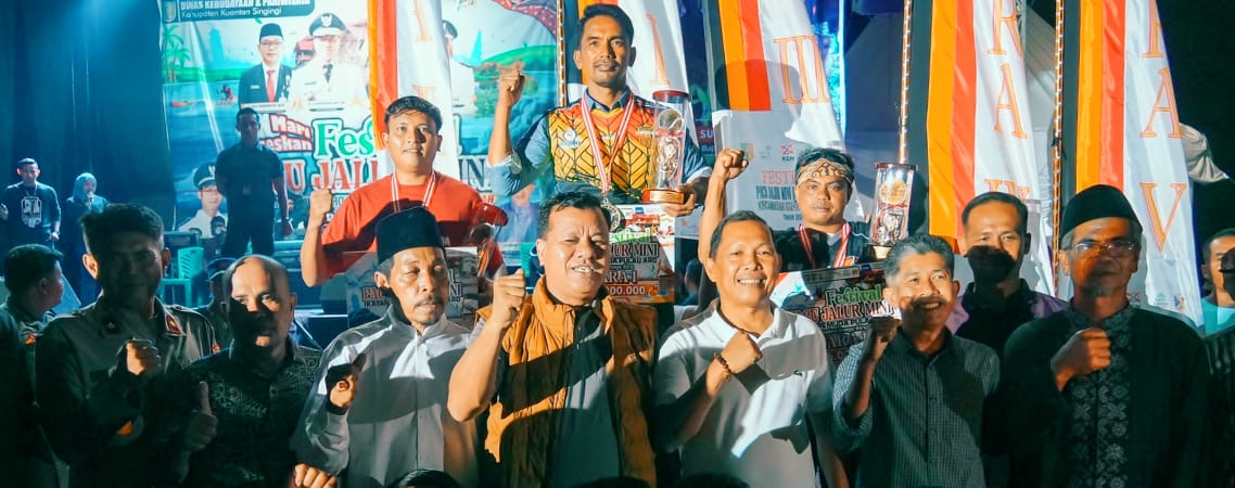 Teluk Kuantan - Bupati Kuantan Singingi (Kuansing) Dr. H. Suhardiman Amby, MM menutup dan menyerahkan secara simbolis hadiah Festival Pacu Jalur Mini Tepian Ronge Biru, Desa Pulau Aro, Minggu (28/7) malam. Dari hasil perpacuan selama tiga hari itu, keluar sebagai juara satu adalah jalur Ghajo Angek Sutan Nan Garang 2017 dari Desa...