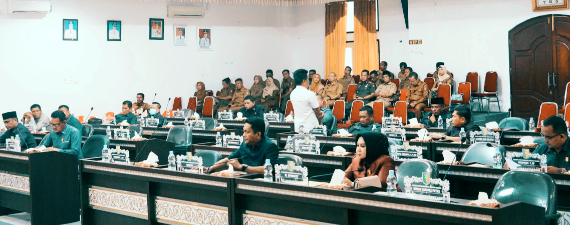 Teluk Kuantan - Bupati Kuantan Singingi (Kuansing) Dr. H. Suhardiman Amby MM diwakili oleh Penjabat Sekretaris Daerah (Pj Sekda) dr. H. Fahdiansyah, SpOG menghadiri Rapat Paripurna Dewan Perwakilan Rakyat Daerah (DPRD) Kuansing. Rapat paripurna tersebut mengagendakan Pandangan Umum Fraksi-fraksi DPRD terhadap Ranperda tentang...