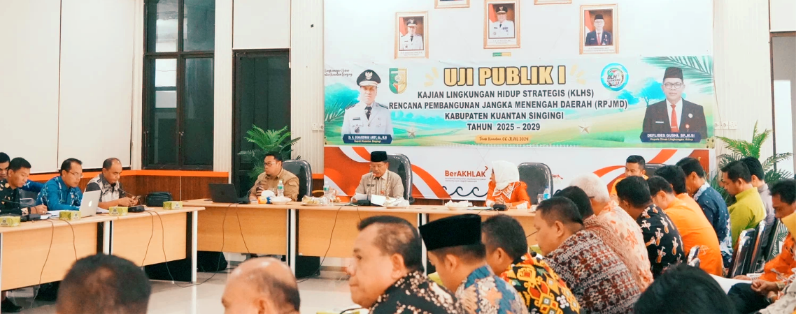 Teluk Kuantan - Pemerintah Kabupaten Kuantan Singingi (Kuansing) menggelar Rapat Uji Publik I Kajian Lingkungan Hidup Strategis (KLHS) Rencana Pembangunan Jangka Menengah Daerah (RPJMD) Tahun 2025-2029 di Ruang Multimedia Kantor Bupati, Kamis (06/06) pagi. Bupati Kuansing Dr. H. Suhardiman Amby, MM melalui Staf Ahli Ir. H. Samsir...