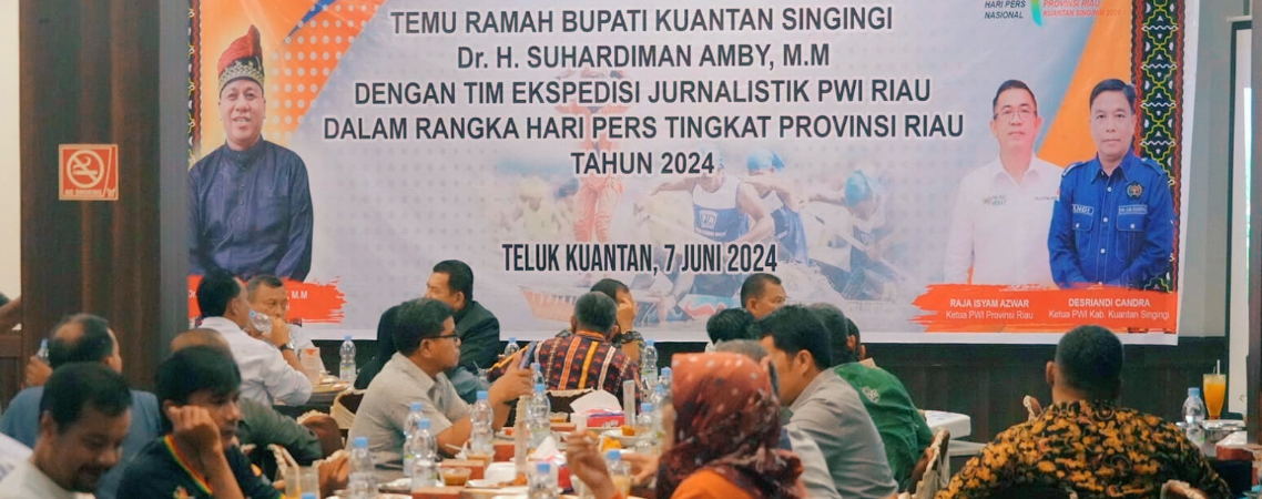Teluk Kuantan - Bupati Kuantan Singingi (Kuansing) Dr. H. Suhardiman Amby, MM menggelar Temu Ramah dengan Tim Ekspedisi Jurnalistik PWI Riau, di Rumah Makan Sederhana Teluk Kuantan, Jumat (07/06) malam. Kegiatan tersebut bersempena dengan rencana kegiatan Hari Pers Nasional Tingkat Provinsi Riau Tahun 2024. Kuansing akan menjadi Tuan...