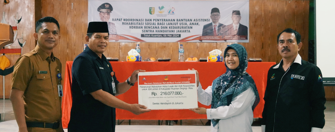 Teluk Kuantan - Sebanyak 446 orang menerima bantuan dari Kementerian Sosial (Kemensos) melalui Sentra Handayani Jakarta. Bantuan Asistensi Rehabilitasi Sosial (ATENSI) disalurkan, Senin (06/05) pagi, di Gedung Narosa Teluk Kuantan. Sejumlah bantuan tersebut diterima oleh Pemerintah Kabupaten Kuantan Singingi (Pemkab Kuansing), dan...