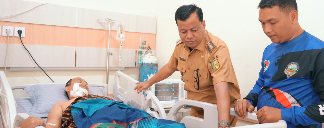 Teluk Kuantan - Usai melaksanakan Apel Perdana setelah libur lebaran Bupati Kuantan Singingi Dr. H. Suhardiman Amby mengunjungi Anggota Polri yang sedang dalam perawatan di RSUD Teluk Kuantan, usai mengalami insiden kecelakaan paramotor, Selasa (16/04/2024). Anggota Polri tersebut yakni Kapolsek Kuantan Mudik AKP Hendra...