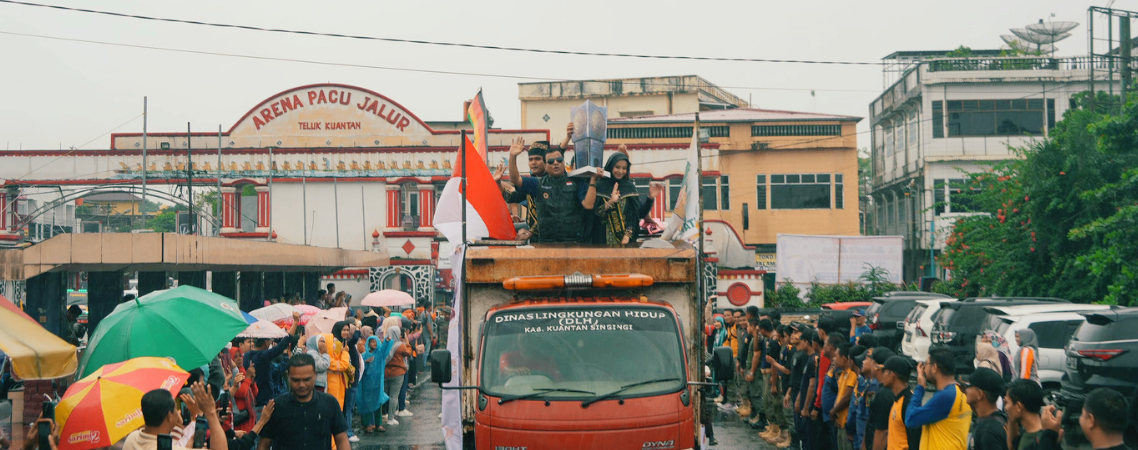 Teluk Kuantan - Kedatangan Bupati Kuantan Singingi Dr. H. Suhardiman Amby, Ak., MM bersama Piala bergengsi yaitu Adipura dari Kementerian Lingkungan Hidup dan Kehutanan (KLHK) Republik Indonesia, dirayakan dengan penuh kebanggaan oleh masyarakat Kabupaten Kuantan Singingi, di Area Taman Jalur, Teluk Kuantan, Sabtu (09/03/2024)...